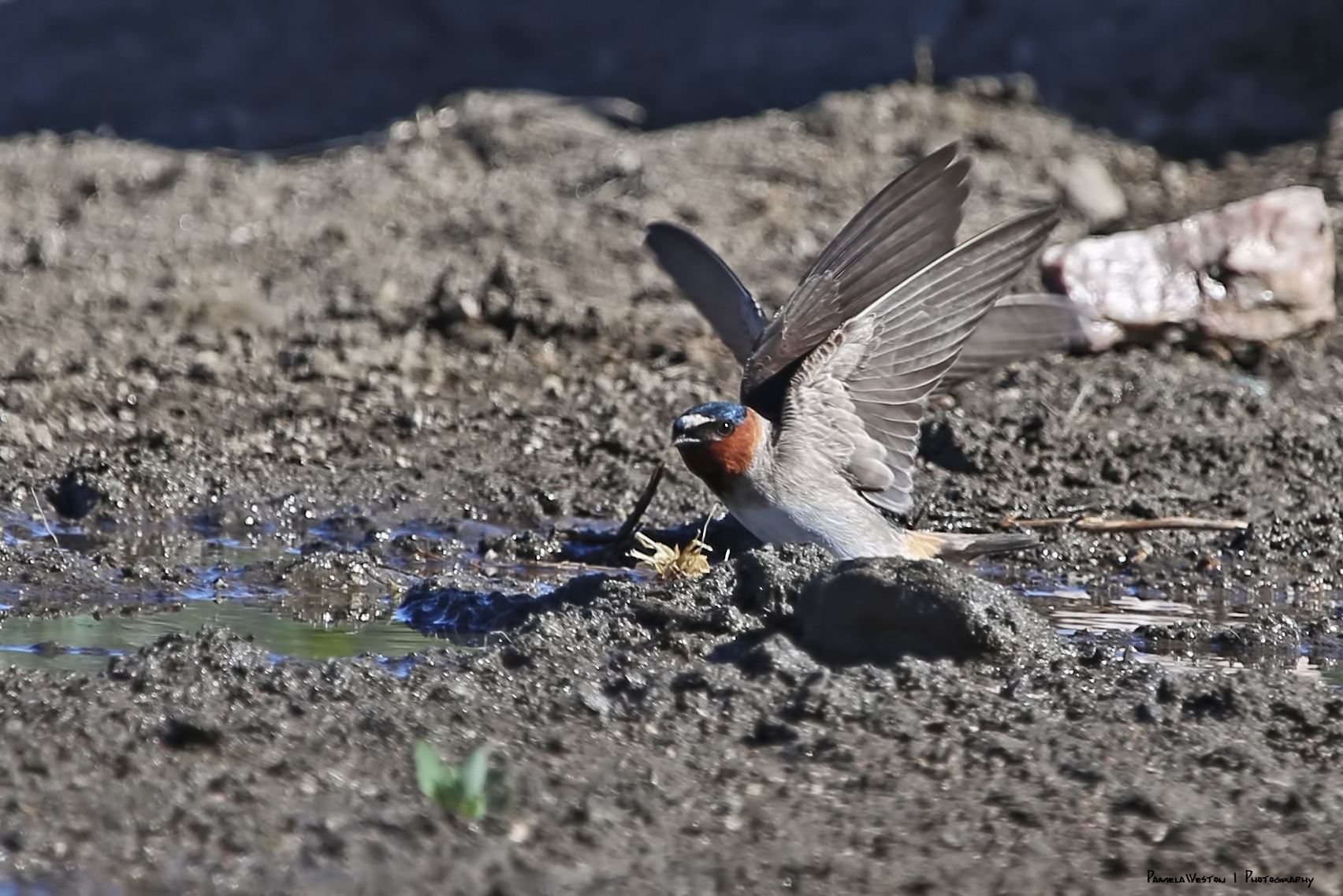 Gathering mud for the nests